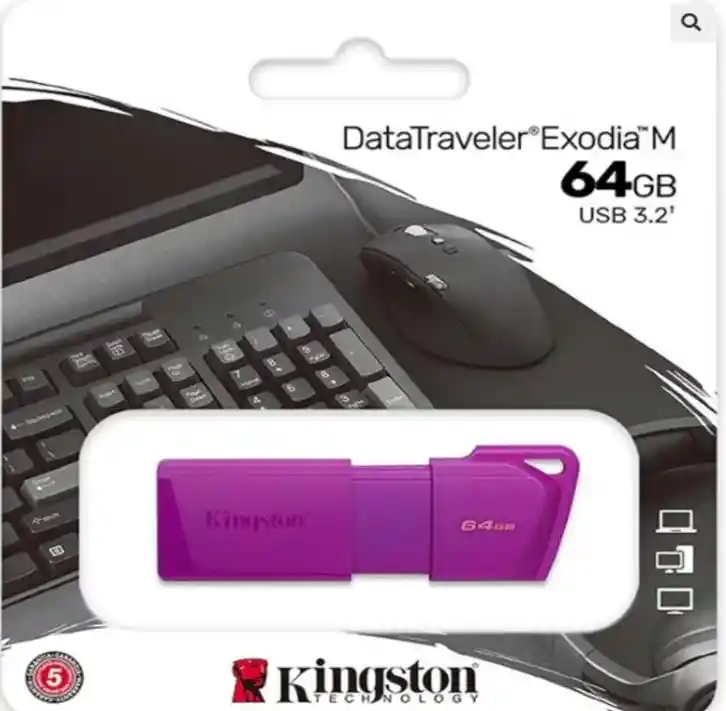 🟣 ¡Tu Estilo, Tus Archivos! USB Kingston Exodia 64GB Neon Purple ⚡✨ ¿Aburrido de las memorias USB negras y grises que todos tienen? 😤 Dale un toque de personalidad a tu setup con la Kingston DataTraveler Exodia en el espectacular color Neon Purple. Esta belleza no solo se ve increíble, sino que cuenta con la velocidad USB 3.2 Gen 1 para que tus documentos, fotos y videos vuelen de un dispositivo a otro. ¡Estilo y rendimiento original que se nota! ¿Cómo funciona? 🧐 Rendimiento garantizado para tu día a día: Tecnología USB 3.2 Gen 1: Ofrece transferencias rápidas de archivos, ideal para laptops, computadoras de escritorio, monitores y otros dispositivos digitales. Capacidad de 64GB: Espacio suficiente para llevar miles de fotos, canciones o tus proyectos de estudio y trabajo sin preocuparte por el espacio. Diseño con Presilla Grande: Se engancha fácilmente a tu llavero para que siempre la tengas a la mano y ese color neón evita que se te quede olvidada en cualquier puerto. Lo que la hace única: 💎 100% Original Kingston: No te arriesgues con réplicas que queman tus puertos seguridad y respaldo de marca global. 🟣 Color Neon Purple: Un estilo moderno, audaz y funcional que resalta en cualquier lugar. 🛡️ Tapa Protectora: Incluye una tapa práctica que protege el conector USB cuando no está en uso y se engancha en la parte trasera para no perderla. ⚡ Compatibilidad Total: Funciona perfecto en puertos USB 2.0 y 3.0, garantizando versatilidad en equipos viejos y nuevos. 🏗️ Construcción Duradera: Ligera pero resistente, diseñada para el trajín diario en la maleta o el bolsillo. 📍 Disponible en Medellín. ¡Asegura tus archivos con lo mejor y con el mejor estilo!