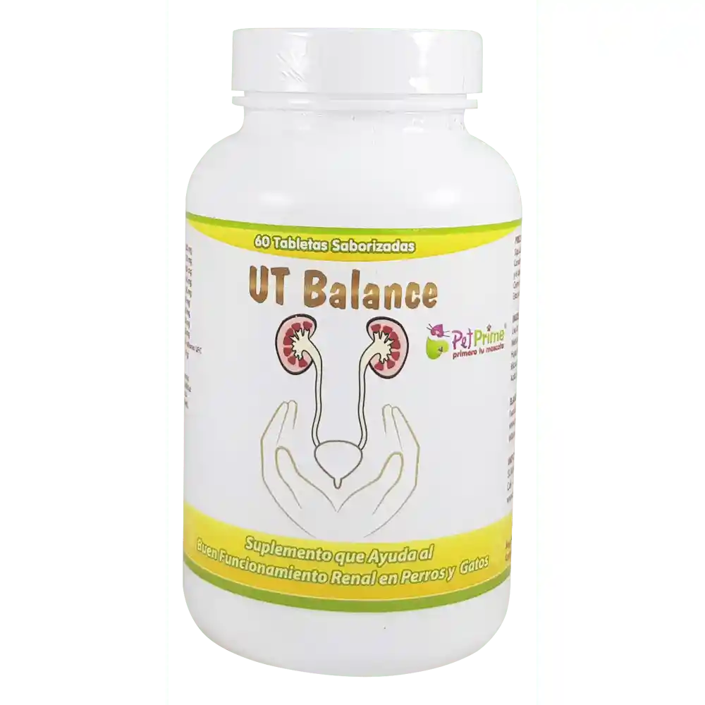 UT BALANCE. Fórmula de apoyo al aparato urinario para mantener su función óptima. PRESENTACIÓN: Tarro x 60 tabletas masticables, saborizadas a hígado de pollo. REGISTRO ICA: 12533-SL INFORMACIÓN GENERAL: UT BALANCE es una fórmula avanzada para ayudar a mantener el equilibrio del pH de la orina, con polvo de raíz de malvavisco y seda de maíz que contienen polisacáridos benéficos y otros ingredientes como el arándano y la vitamina C que acidifican la orina. El polvo de chanca piedra, extracto de hoja de olivo tiene un efecto antiinflamatorio y diurético. El aminoácido L-metionina apoya la producción de SAMe. PRECAUCIONES: Administrar durante o después de que el animal haya comido. Guardar en un lugar fresco y seco. Solo para uso animal. Manténgase fuera del alcance de los niños y los animales. En caso de sobredosis accidental, comuníquese con su médico veterinario de inmediato. DOSIS: GATOS Hasta 7 kg………………½ Tab PERROS Hasta 7 kg………………½ Tab De 8 a 14 kg………… 1 Tab De 15 a 25 kg……….2 Tab De 26 a 45 kg……….3 Tab Dividir en dos tomas AM y PM Duración de tratamiento: 7 a 14 días COMPOSICIÓN GARANTIZADA: Ingredientes activos Por 2 tabletas masticables: Uva Ursi…………… 200 mg Chanca Piedra (Phyllanthus niruri) polvo……….150 mg Extracto de Cranberry………………..100 mg Extracto de raiz Marshmallow (Althaea officinalis)……….100 mg L-Metionina………………….100 mg Extracto de piel de maíz…………………60 mg Acido Ascórbico (Vitamina C)…………….60 mg Dandelion (Taraxacum officinale)………………50 mg Extracto de hoja de Olivo(15% Oleuropeina)…………….50 mg Bacillus Coagulans……………….35 millones UFC