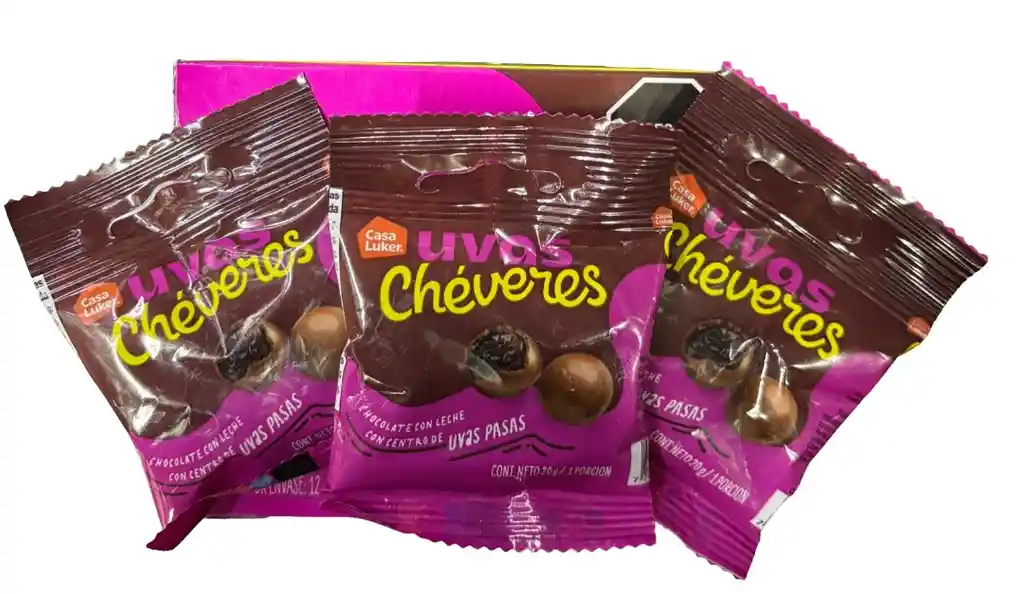 🍇 Uvas Chéveres – Uvas Pasas Cubiertas de Chocolate (20 g) ¡Un toque dulce en el momento justo! Las Uvas Chéveres de 20 g son uvas pasas cubiertas con delicioso chocolate, en una presentación mini perfecta para llevar en el bolsillo, la lonchera o como detalle en eventos. Características: 🟤 Snack práctico y delicioso en formato de 20 g 🍫 Uvas pasas cubiertas de suave chocolate 🧃 Ideal para loncheras, snacks rápidos o para regalar 💡 Tamaño perfecto para controlar porciones y darte un gusto sin culpa Un bocado chévere, dulce y natural... ¡porque los mejores placeres vienen en pequeñas porciones!