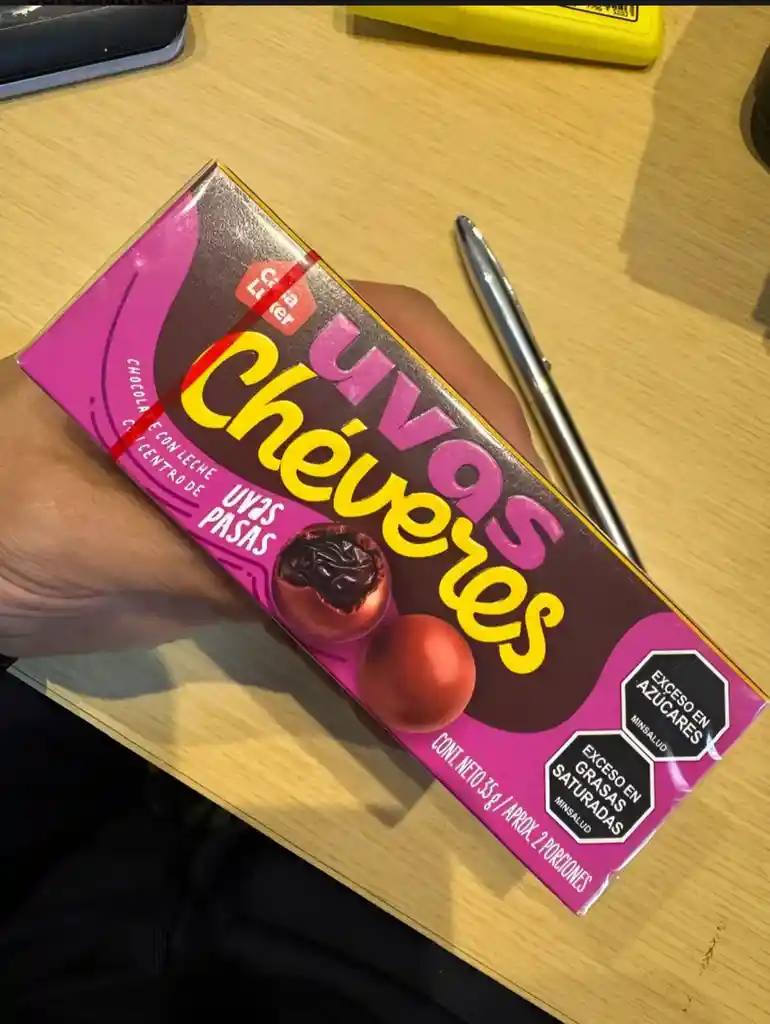 🍇🍫 Uvas Chéveres – Uvas Pasas Cubiertas de Chocolate (35 g) ¡Un snack pequeño con gran sabor! Las Uvas Chéveres de 35 g combinan el dulzor natural de las uvas pasas con una deliciosa cobertura de chocolate, creando el bocado perfecto para disfrutar en cualquier momento del día. Características: 📏 Presentación práctica de 35 g, ideal para llevar 🍬 Uvas pasas seleccionadas cubiertas de suave chocolate 💼 Perfectas para loncheras, meriendas o como snack en la oficina 🌱 Fuente natural de energía, con un toque dulce Pequeñas, deliciosas y listas para disfrutar. ¡Porque lo chévere también viene en tamaño mini!
