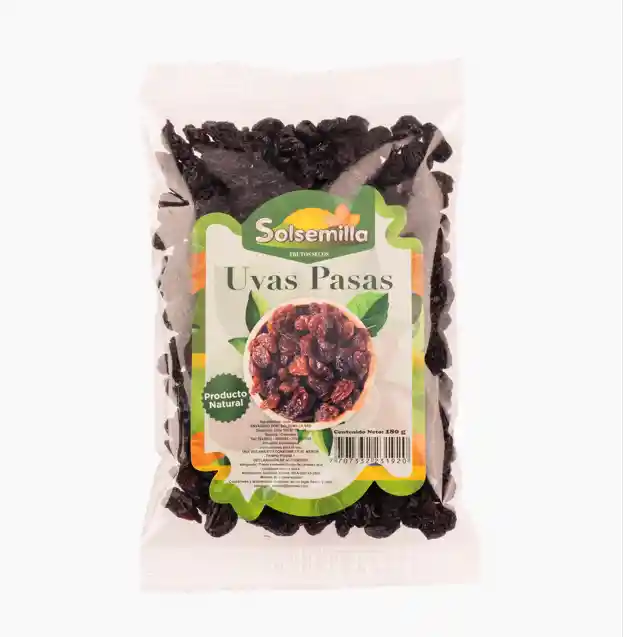 Uvas pasas seleccionadas, jugosas y deliciosas. Excelente complemento para snacks y recetas.