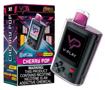 Vaporizador V-Play 20k de 20.000 Puffs 5% Sabor: Cherry Pop Juegos: (3) Tetris, Pac-Man, F22