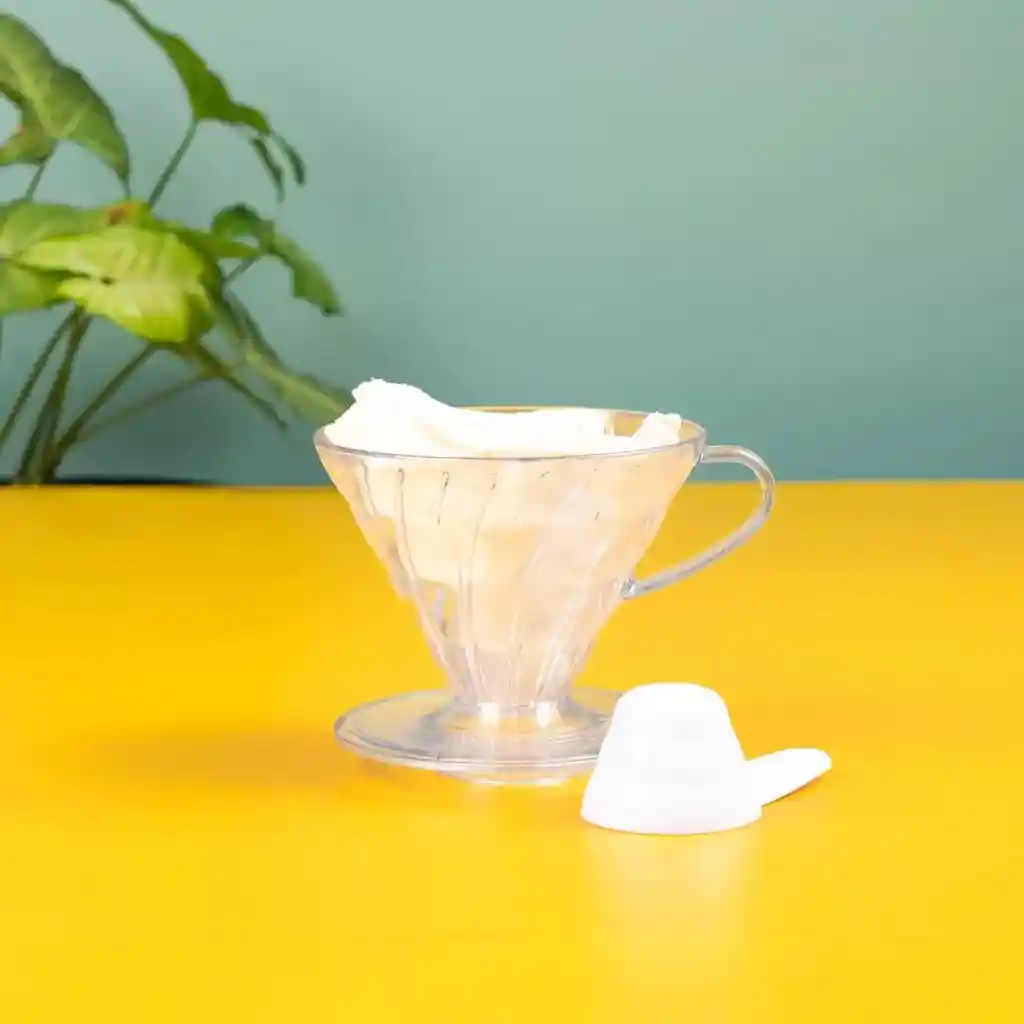 Set de V60 02 en acrílico que incluye cuchara medidora de 7 gramos y filtro de tela. Uno de los métodos preferidos por muchos baristas ya que por su material se conduce muy bien el calor evitando así choques térmicos. Es un método de goteo que permite una elaboración de café con matices diferentes al resto de métodos. Esto se consigue gracias a que su diseño de cono hace que el agua siempre fluya hacia el centro, lo que hace que haya un mayor tiempo de contacto con la molienda. Con este método puedes variar de mejor manera la molienda según tu gusto, ya que la molienda puede ser mas fina, pero todo depende de tu gusto y de que resultados desees obtener.