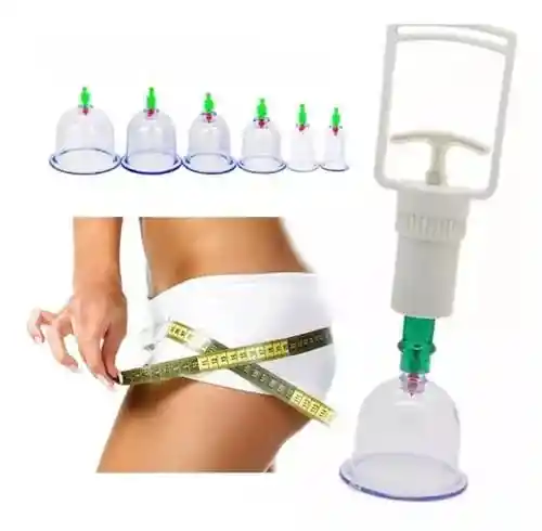 La vacuumterapia o terapia de vacío es una técnica no invasiva que trabaja efectuando presión negativa sobre la piel, logrando efectos terapéuticos y estéticos. Características: * Material: Plástico. * Tamaño Aprox.: Pistola de vacío: 17 cm x 6.3 cm * Ventosas diámetro interior: Nº1: 58,0 mm / Nº 2: 45,0 mm / Nº3: 40,0 mm / Nº4: 32,0 mm / Nº5: 25,0 mm / Nº6: 22,0 mm. * Peso Aprox.: Caja 181 g. * Estimula el tejido conjuntivo de adentro hacia afuera, dando como resultado un aumento en el flujo sanguíneo mejorando la circulación. * Realiza un verdadero drenaje linfático y una efectiva eliminación de toxinas. * Es un excelente complemento de las técnicas de reducción de medidas. Disminuye la flacidez mejorando el tono tanto facial como corporal. * Mejora la calidad de la piel y disminuye la retención de líquidos.