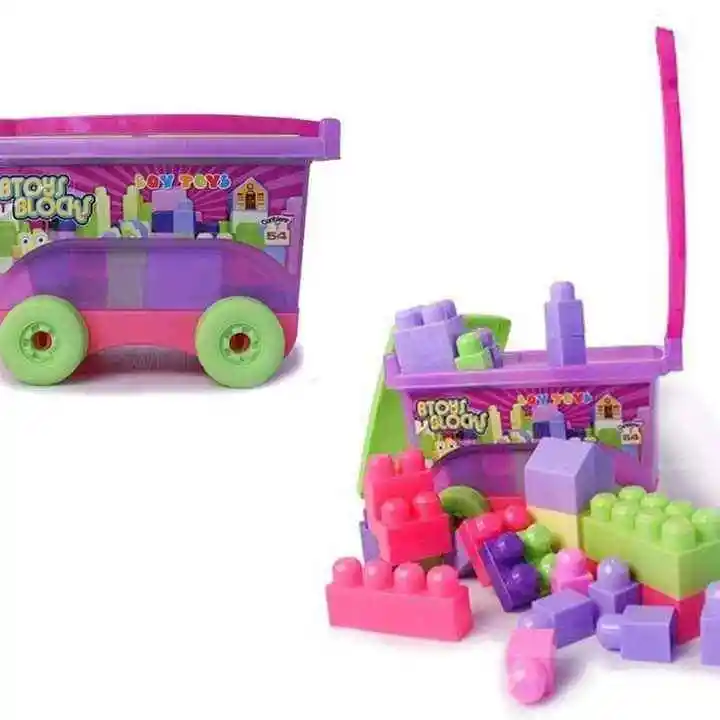 Incluye 54 piezas armables Los diseños y colores de las piezas pueden variar Organiza las piezas en el vagón y llévalo a todas partes Fácil de guardar NIÑA: Cada unidad contiene variaciones de colores en sus piezas: rosado, morado, fucsia, amarillo, verde, celeste Edad recomendada: 3 años en adelante