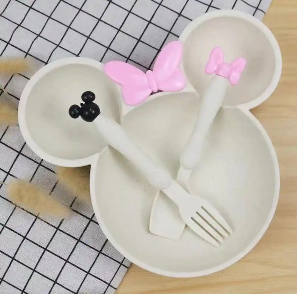 Hermosa vajilla en bambu,alimenta a tu bebe de una forma creativa animada ,dale un toque de alegria a sus comidas,ideal para regalo cumpleaños,navidad ,dia del niño.