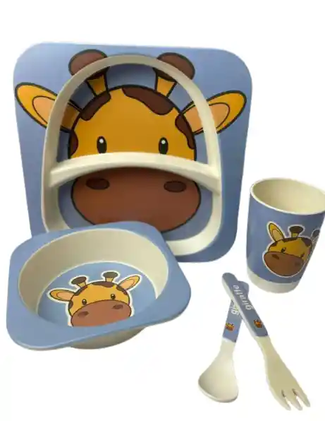 Convierte la hora de comer en un momento divertido, seguro y responsable con la Vajilla Infantil de Bambú. Este set de 5 piezas está fabricado con fibras de bambú biodegradables y materiales libres de BPA, ofreciendo una alternativa ecológica y confiable frente a la vajilla plástica tradicional. Su diseño con ilustraciones de animales estimula el apetito y la autonomía de los niños, mientras que su resistencia y ligereza la hacen ideal para el uso diario. 🔹 Características Material ecológico: fibras de bambú + almidón de maíz, libres de BPA y tóxicos. Incluye 5 piezas: plato compartimentado, bowl, vaso, cuchara y tenedor. Plato con divisiones para separar alimentos. Ilustraciones llamativas y coloridas para motivar a los niños. Superficie suave, ligera y resistente a caídas. Fácil de limpiar, apta para lavavajillas (rejilla superior). Presentación en caja de cartón reciclable. 🔹 Beneficios Salud y seguridad: fabricada con materiales aptos para uso alimentario. Ecológica: alternativa sostenible y biodegradable. Práctica: piezas adaptadas al tamaño de bebés y niños pequeños. Educativa: fomenta la alimentación independiente desde temprana edad. Atractiva: convierte la comida en una experiencia divertida con diseños de animales. 🔹 Dimensiones aproximadas Plato: 21 × 21 cm. Bowl: 13 × 13 cm. Vaso: 9 cm de alto × 7 cm de diámetro. Cuchara y tenedor: 13 – 14 cm de largo. 🔹 Modo de uso Lava todas las piezas antes del primer uso. Usa el plato compartimentado para separar alimentos. Sirve sopas, cereales o purés en el bowl y líquidos en el vaso. Permite que el niño utilice la cuchara y el tenedor adaptados a su tamaño. Lava tras cada uso y guarda en un lugar seco. Evita usar en microondas o exponer a temperaturas muy altas.