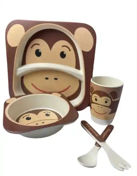 Convierte la hora de comer en un momento divertido, seguro y responsable con la Vajilla Infantil de Bambú. Este set de 5 piezas está fabricado con fibras de bambú biodegradables y materiales libres de BPA, ofreciendo una alternativa ecológica y confiable frente a la vajilla plástica tradicional. Su diseño con ilustraciones de animales estimula el apetito y la autonomía de los niños, mientras que su resistencia y ligereza la hacen ideal para el uso diario. 🔹 Características Material ecológico: fibras de bambú + almidón de maíz, libres de BPA y tóxicos. Incluye 5 piezas: plato compartimentado, bowl, vaso, cuchara y tenedor. Plato con divisiones para separar alimentos. Ilustraciones llamativas y coloridas para motivar a los niños. Superficie suave, ligera y resistente a caídas. Fácil de limpiar, apta para lavavajillas (rejilla superior). Presentación en caja de cartón reciclable. 🔹 Beneficios Salud y seguridad: fabricada con materiales aptos para uso alimentario. Ecológica: alternativa sostenible y biodegradable. Práctica: piezas adaptadas al tamaño de bebés y niños pequeños. Educativa: fomenta la alimentación independiente desde temprana edad. Atractiva: convierte la comida en una experiencia divertida con diseños de animales. 🔹 Dimensiones aproximadas Plato: 21 × 21 cm. Bowl: 13 × 13 cm. Vaso: 9 cm de alto × 7 cm de diámetro. Cuchara y tenedor: 13 – 14 cm de largo. 🔹 Modo de uso Lava todas las piezas antes del primer uso. Usa el plato compartimentado para separar alimentos. Sirve sopas, cereales o purés en el bowl y líquidos en el vaso. Permite que el niño utilice la cuchara y el tenedor adaptados a su tamaño. Lava tras cada uso y guarda en un lugar seco. Evita usar en microondas o exponer a temperaturas muy altas.