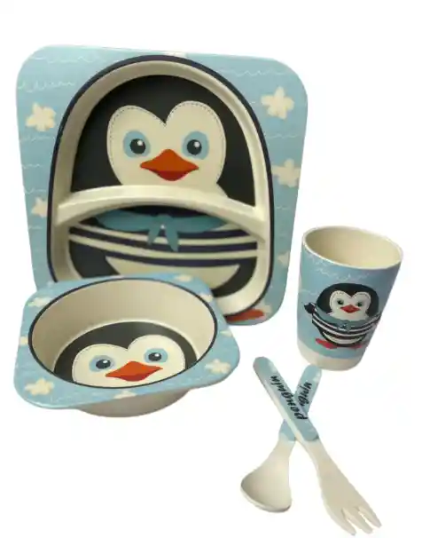 Convierte la hora de comer en un momento divertido, seguro y responsable con la Vajilla Infantil de Bambú. Este set de 5 piezas está fabricado con fibras de bambú biodegradables y materiales libres de BPA, ofreciendo una alternativa ecológica y confiable frente a la vajilla plástica tradicional. Su diseño con ilustraciones de animales estimula el apetito y la autonomía de los niños, mientras que su resistencia y ligereza la hacen ideal para el uso diario. 🔹 Características Material ecológico: fibras de bambú + almidón de maíz, libres de BPA y tóxicos. Incluye 5 piezas: plato compartimentado, bowl, vaso, cuchara y tenedor. Plato con divisiones para separar alimentos. Ilustraciones llamativas y coloridas para motivar a los niños. Superficie suave, ligera y resistente a caídas. Fácil de limpiar, apta para lavavajillas (rejilla superior). Presentación en caja de cartón reciclable. 🔹 Beneficios Salud y seguridad: fabricada con materiales aptos para uso alimentario. Ecológica: alternativa sostenible y biodegradable. Práctica: piezas adaptadas al tamaño de bebés y niños pequeños. Educativa: fomenta la alimentación independiente desde temprana edad. Atractiva: convierte la comida en una experiencia divertida con diseños de animales. 🔹 Dimensiones aproximadas Plato: 21 × 21 cm. Bowl: 13 × 13 cm. Vaso: 9 cm de alto × 7 cm de diámetro. Cuchara y tenedor: 13 – 14 cm de largo. 🔹 Modo de uso Lava todas las piezas antes del primer uso. Usa el plato compartimentado para separar alimentos. Sirve sopas, cereales o purés en el bowl y líquidos en el vaso. Permite que el niño utilice la cuchara y el tenedor adaptados a su tamaño. Lava tras cada uso y guarda en un lugar seco. Evita usar en microondas o exponer a temperaturas muy altas.