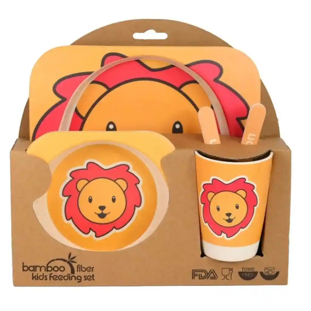Vajilla Para Bebes De Bambú Diseño León