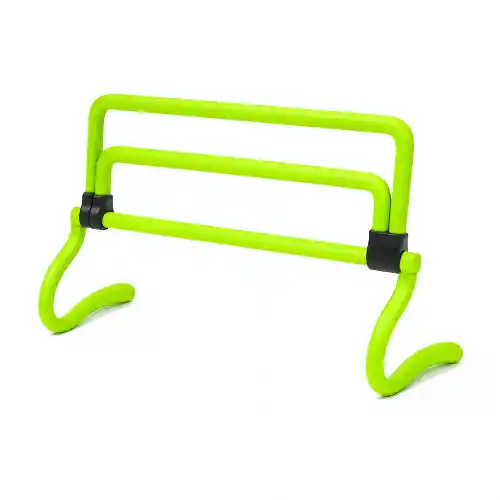herramienta de entrenamiento diseñada para mejorar la agilidad, velocidad y coordinación en diversas disciplinas deportivas. Especificaciones Técnicas Material: Construcción robusta en tubos de PVC o plástico resistente al impacto, lo que la hace ligera y duradera. Diseño: Estructura plegable con dos barras horizontales y bases curvas en forma de "S" o gancho que garantizan estabilidad en diferentes superficies. Dimensiones: Ancho: Aproximadamente 44.5 cm a 45 cm. Alturas Ajustables: Este modelo permite variar la dificultad del ejercicio mediante un sistema de rotación o plegado, ofreciendo comúnmente hasta 4 niveles de altura: 15 cm (5.9 pulgadas) 23 cm (9 pulgadas) 30 cm (11.8 pulgadas) 37 cm (14.5 pulgadas).