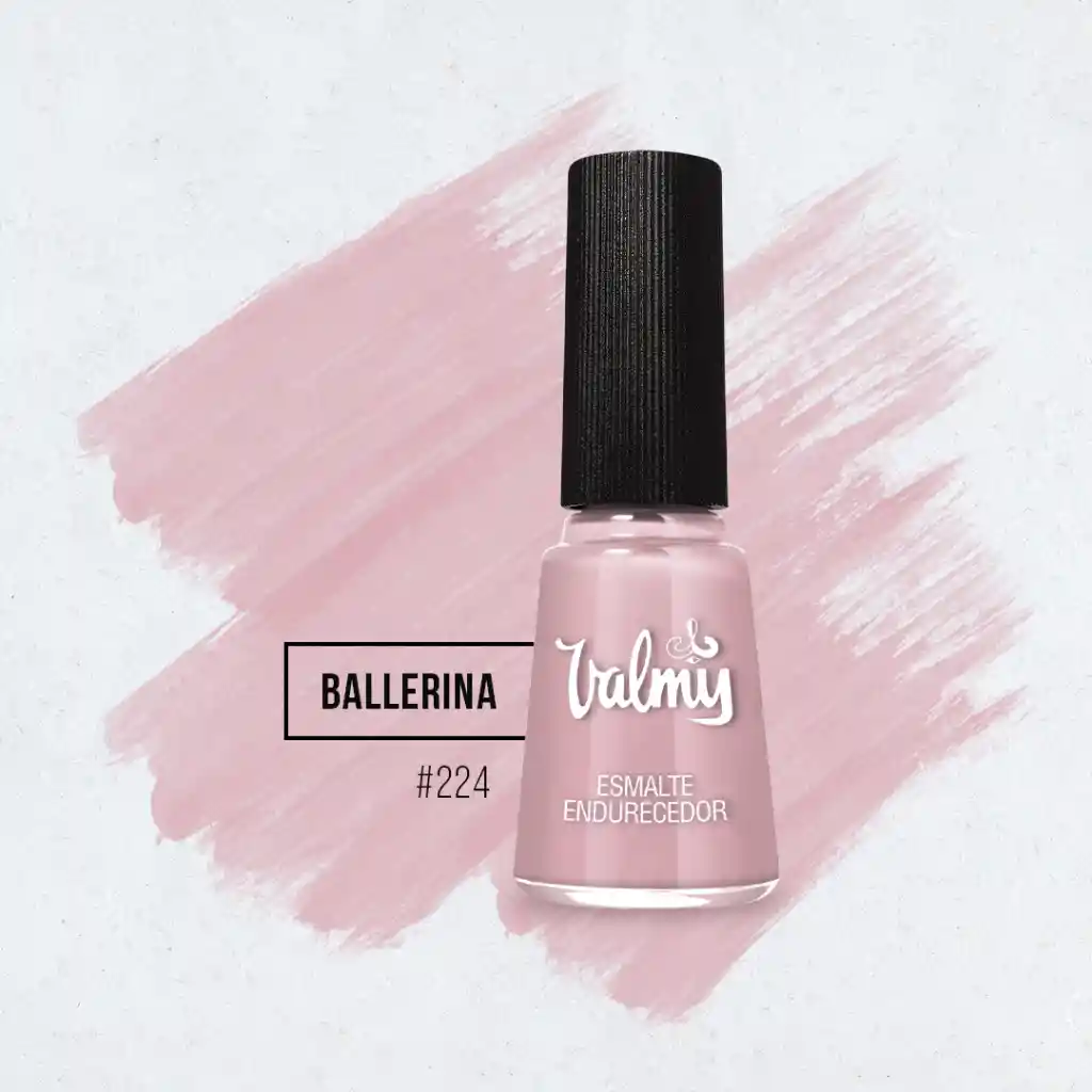 Esmalte que otorga alto brillo y dureza de diamante en las uñas, ya que, posee una fórmula vegana libre de formaldehído, resina de formaldehído, tolueno, alcanfor, ftalatos, xyleno y parabenos. Tono ballerina #224.