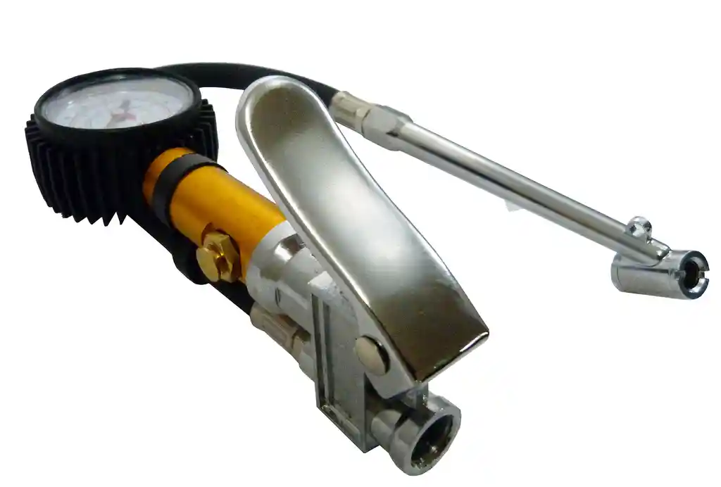 WUFU Ref: TG-7 *Inflador de llantas. *Equipamiento para talleres, servitecas, entre otros. * Manómetro ( goma) * Manguera resistente * Válvula doble boquilla (metálico) Medidas de empaque: 31.5x13.5x8 Cm Peso: 185 g