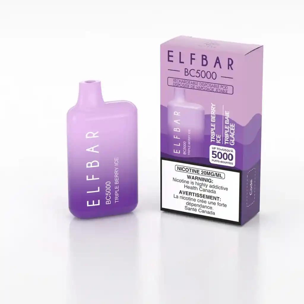 Vaporizador elf bar triple moras mentolado 5000 puffs recargable 5% nicotina. Este producto contiene nicotina, la nicotina es adictiva, solo para mayores de edad.