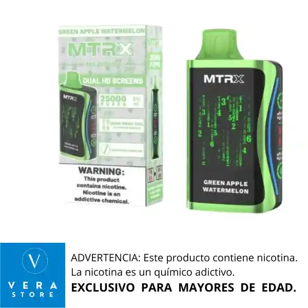 RECOMENDACIÓN IMPORTANTE: El vaporizador no llega con su batería cargada al 100% desde fabrica. Razón por la cual se debe colocar a cargar como mínimo 1 (una) hora de manera continua antes de usarlo, para lograr así un vapeo prolongado. El vape MRTX 25000 puffs parece ser un dispositivo de vapeo desechable con una gran cantidad de puffs. Aquí te presento algunas características que podrían ser relevantes: 1. Duración de la batería: La batería debería durar para los 25000 puffs, dependiendo del uso y la configuración del dispositivo. 2. Capacidad del tanque: El tanque debería tener una capacidad suficiente para contener el líquido de vapeo necesario para los 25000 puffs. 3. Sabor y nicotina: El dispositivo podría ofrecer diferentes sabores y niveles de nicotina para satisfacer las preferencias de los usuarios. 4. Diseño y tamaño: El dispositivo podría ser compacto y ligero, lo que lo hace fácil de llevar y usar. 5. Seguridad: El dispositivo debería tener características de seguridad integradas, como protección contra sobrecarga y cortocircuitos. Ventajas 1. Conveniencia: Un dispositivo desechable con 25000 puffs ofrece una gran conveniencia, ya que no requiere recargar o rellenar el tanque. 2. Larga duración: La gran cantidad de puffs asegura que el dispositivo dure mucho tiempo, lo que reduce la necesidad de reemplazarlo con frecuencia. * Calidad del dispositivo: La calidad del dispositivo y del líquido de vapeo puede variar dependiendo del fabricante y del proveedor. Aquí te presento una guía general para usar el vape MRTX 25000 puffs: Paso 1: Encender el dispositivo 1. Verifica que el dispositivo esté cargado: Asegúrate de que el dispositivo tenga suficiente carga para funcionar. 2. Presiona el botón de encendido: Por lo general, hay un botón en el dispositivo que debes presionar para encenderlo. Paso 2: Ajustar la configuración 1. Verifica si hay ajustes: Algunos dispositivos tienen ajustes para la potencia o el flujo de aire. Asegúrate de entender cómo funcionan estos ajustes. 2. Ajusta según tus preferencias: Si el dispositivo tiene ajustes, puedes ajustarlos según tus preferencias personales. Paso 3: Vapear 1. Toma una bocanada: Coloca tus labios en la boquilla y toma una bocanada suave y lenta. 2. Activa el dispositivo: Al tomar una bocanada, el dispositivo debería activarse y producir vapor. 3. Inhala y exhala: Inhala el vapor y exhala lentamente. Paso 4: Cuidar el dispositivo 1. Evita sobrecargar el dispositivo: No uses el dispositivo de manera excesiva, ya que esto puede reducir su vida útil. 2. Almacena el dispositivo adecuadamente: Cuando no estés usando el dispositivo, almacénalo en un lugar fresco y seco. Consejos adicionales 1. Lee las instrucciones del fabricante: Asegúrate de leer las instrucciones del fabricante para entender cómo usar el dispositivo de manera segura y efectiva. 2. Usa el dispositivo de manera responsable: Recuerda que el vapeo puede tener riesgos para la salud, así que usa el dispositivo de manera responsable y moderada.