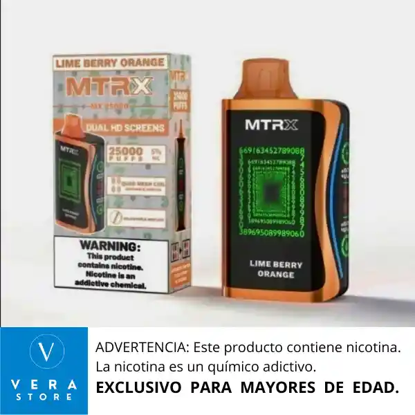 RECOMENDACIÓN IMPORTANTE: El vaporizador no llega con su batería cargada al 100% desde fabrica. Razón por la cual se debe colocar a cargar como mínimo 1 (una) hora de manera continua antes de usarlo, para lograr así un vapeo prolongado. El vape MRTX 25000 puffs parece ser un dispositivo de vapeo desechable con una gran cantidad de puffs. Aquí te presento algunas características que podrían ser relevantes: 1. Duración de la batería: La batería debería durar para los 25000 puffs, dependiendo del uso y la configuración del dispositivo. 2. Capacidad del tanque: El tanque debería tener una capacidad suficiente para contener el líquido de vapeo necesario para los 25000 puffs. 3. Sabor y nicotina: El dispositivo podría ofrecer diferentes sabores y niveles de nicotina para satisfacer las preferencias de los usuarios. 4. Diseño y tamaño: El dispositivo podría ser compacto y ligero, lo que lo hace fácil de llevar y usar. 5. Seguridad: El dispositivo debería tener características de seguridad integradas, como protección contra sobrecarga y cortocircuitos. Ventajas 1. Conveniencia: Un dispositivo desechable con 25000 puffs ofrece una gran conveniencia, ya que no requiere recargar o rellenar el tanque. 2. Larga duración: La gran cantidad de puffs asegura que el dispositivo dure mucho tiempo, lo que reduce la necesidad de reemplazarlo con frecuencia. * Calidad del dispositivo: La calidad del dispositivo y del líquido de vapeo puede variar dependiendo del fabricante y del proveedor. Aquí te presento una guía general para usar el vape MRTX 25000 puffs: Paso 1: Encender el dispositivo 1. Verifica que el dispositivo esté cargado: Asegúrate de que el dispositivo tenga suficiente carga para funcionar. 2. Presiona el botón de encendido: Por lo general, hay un botón en el dispositivo que debes presionar para encenderlo. Paso 2: Ajustar la configuración 1. Verifica si hay ajustes: Algunos dispositivos tienen ajustes para la potencia o el flujo de aire. Asegúrate de entender cómo funcionan estos ajustes. 2. Ajusta según tus preferencias: Si el dispositivo tiene ajustes, puedes ajustarlos según tus preferencias personales. Paso 3: Vapear 1. Toma una bocanada: Coloca tus labios en la boquilla y toma una bocanada suave y lenta. 2. Activa el dispositivo: Al tomar una bocanada, el dispositivo debería activarse y producir vapor. 3. Inhala y exhala: Inhala el vapor y exhala lentamente. Paso 4: Cuidar el dispositivo 1. Evita sobrecargar el dispositivo: No uses el dispositivo de manera excesiva, ya que esto puede reducir su vida útil. 2. Almacena el dispositivo adecuadamente: Cuando no estés usando el dispositivo, almacénalo en un lugar fresco y seco. Consejos adicionales 1. Lee las instrucciones del fabricante: Asegúrate de leer las instrucciones del fabricante para entender cómo usar el dispositivo de manera segura y efectiva. 2. Usa el dispositivo de manera responsable: Recuerda que el vapeo puede tener riesgos para la salud, así que usa el dispositivo de manera responsable y moderada.