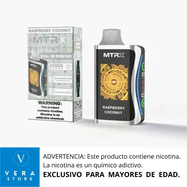 RECOMENDACIÓN IMPORTANTE: El vaporizador no llega con su batería cargada al 100% desde fabrica. Razón por la cual se debe colocar a cargar como mínimo 1 (una) hora de manera continua antes de usarlo, para lograr así un vapeo prolongado. El vape MRTX 25000 puffs parece ser un dispositivo de vapeo desechable con una gran cantidad de puffs. Aquí te presento algunas características que podrían ser relevantes: 1. Duración de la batería: La batería debería durar para los 25000 puffs, dependiendo del uso y la configuración del dispositivo. 2. Capacidad del tanque: El tanque debería tener una capacidad suficiente para contener el líquido de vapeo necesario para los 25000 puffs. 3. Sabor y nicotina: El dispositivo podría ofrecer diferentes sabores y niveles de nicotina para satisfacer las preferencias de los usuarios. 4. Diseño y tamaño: El dispositivo podría ser compacto y ligero, lo que lo hace fácil de llevar y usar. 5. Seguridad: El dispositivo debería tener características de seguridad integradas, como protección contra sobrecarga y cortocircuitos. Ventajas 1. Conveniencia: Un dispositivo desechable con 25000 puffs ofrece una gran conveniencia, ya que no requiere recargar o rellenar el tanque. 2. Larga duración: La gran cantidad de puffs asegura que el dispositivo dure mucho tiempo, lo que reduce la necesidad de reemplazarlo con frecuencia. * Calidad del dispositivo: La calidad del dispositivo y del líquido de vapeo puede variar dependiendo del fabricante y del proveedor. Aquí te presento una guía general para usar el vape MRTX 25000 puffs: Paso 1: Encender el dispositivo 1. Verifica que el dispositivo esté cargado: Asegúrate de que el dispositivo tenga suficiente carga para funcionar. 2. Presiona el botón de encendido: Por lo general, hay un botón en el dispositivo que debes presionar para encenderlo. Paso 2: Ajustar la configuración 1. Verifica si hay ajustes: Algunos dispositivos tienen ajustes para la potencia o el flujo de aire. Asegúrate de entender cómo funcionan estos ajustes. 2. Ajusta según tus preferencias: Si el dispositivo tiene ajustes, puedes ajustarlos según tus preferencias personales. Paso 3: Vapear 1. Toma una bocanada: Coloca tus labios en la boquilla y toma una bocanada suave y lenta. 2. Activa el dispositivo: Al tomar una bocanada, el dispositivo debería activarse y producir vapor. 3. Inhala y exhala: Inhala el vapor y exhala lentamente. Paso 4: Cuidar el dispositivo 1. Evita sobrecargar el dispositivo: No uses el dispositivo de manera excesiva, ya que esto puede reducir su vida útil. 2. Almacena el dispositivo adecuadamente: Cuando no estés usando el dispositivo, almacénalo en un lugar fresco y seco. Consejos adicionales 1. Lee las instrucciones del fabricante: Asegúrate de leer las instrucciones del fabricante para entender cómo usar el dispositivo de manera segura y efectiva. 2. Usa el dispositivo de manera responsable: Recuerda que el vapeo puede tener riesgos para la salud, así que usa el dispositivo de manera responsable y moderada.