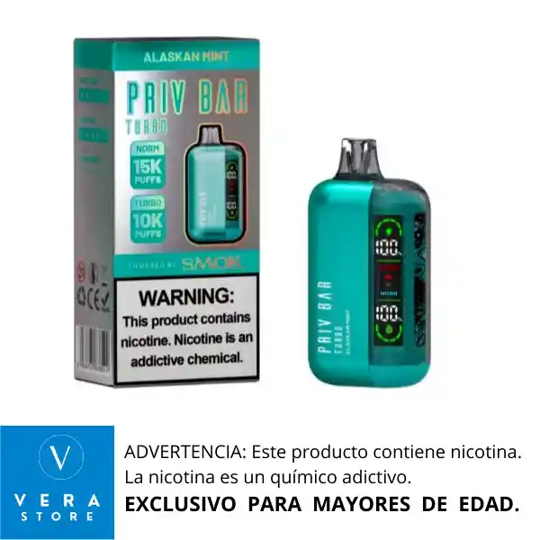 RECOMENDACIÓN IMPORTANTE: El vaporizador no llega con su batería cargada al 100% desde fabrica. Razón por la cual se debe colocar a cargar como mínimo 1 (una) hora de manera continua antes de usarlo, para lograr así un vapeo prolongado. Vaporizador desechable es un dispositivo extraordinario equipado con 16 ml de e-liquid precargado y una batería recargable. Está equipado con una pantalla de visualización que muestra tanto el estado de la batería como el nivel de e-juice. Diseñado para ofrecer aproximadamente 15,000 inhalaciones, Priv Bar Turbo promete una experiencia de vapeo extensa. Aprovecha la tecnología avanzada de SMOK, lo que garantiza una producción de vapor denso y una entrega satisfactoria de nicotina. La comodidad adicional de la pantalla permite a los usuarios monitorear sin esfuerzo tanto los niveles de batería como de e-liquid, mejorando la experiencia general de vapeo. * Modo normal de 15000 bocanadas * Modo 10000 Turbo * 16 ml de capacidad de líquido electrónico * 5% (50 mg) de concentración de nicotina * Hasta 15000 inhalaciones * Batería y E-líquido indican * Batería Recargable * Puerto tipo C (cable no incluido) * 800 mAh Capacidad de la batería