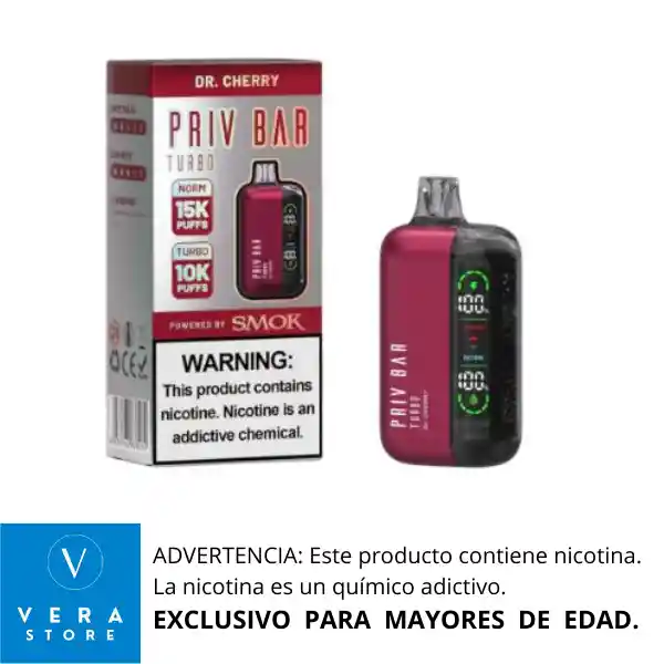 RECOMENDACIÓN IMPORTANTE: El vaporizador no llega con su batería cargada al 100% desde fabrica. Razón por la cual se debe colocar a cargar como mínimo 1 (una) hora de manera continua antes de usarlo, para lograr así un vapeo prolongado. Vaporizador desechable es un dispositivo extraordinario equipado con 16 ml de e-liquid precargado y una batería recargable. Está equipado con una pantalla de visualización que muestra tanto el estado de la batería como el nivel de e-juice. Diseñado para ofrecer aproximadamente 15,000 inhalaciones, Priv Bar Turbo promete una experiencia de vapeo extensa. Aprovecha la tecnología avanzada de SMOK, lo que garantiza una producción de vapor denso y una entrega satisfactoria de nicotina. La comodidad adicional de la pantalla permite a los usuarios monitorear sin esfuerzo tanto los niveles de batería como de e-liquid, mejorando la experiencia general de vapeo. * Modo normal de 15000 bocanadas * Modo 10000 Turbo * 16 ml de capacidad de líquido electrónico * 5% (50 mg) de concentración de nicotina * Hasta 15000 inhalaciones * Batería y E-líquido indican * Batería Recargable * Puerto tipo C (cable no incluido) * 800 mAh Capacidad de la batería