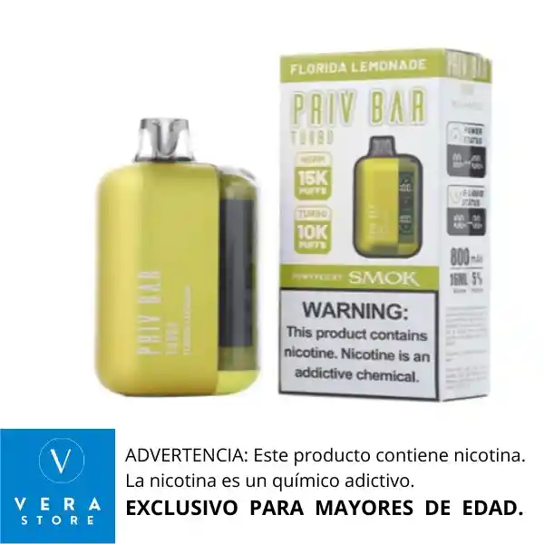 RECOMENDACIÓN IMPORTANTE: El vaporizador no llega con su batería cargada al 100% desde fabrica. Razón por la cual se debe colocar a cargar como mínimo 1 (una) hora de manera continua antes de usarlo, para lograr así un vapeo prolongado. Vaporizador desechable es un dispositivo extraordinario equipado con 16 ml de e-liquid precargado y una batería recargable. Está equipado con una pantalla de visualización que muestra tanto el estado de la batería como el nivel de e-juice. Diseñado para ofrecer aproximadamente 15,000 inhalaciones, Priv Bar Turbo promete una experiencia de vapeo extensa. Aprovecha la tecnología avanzada de SMOK, lo que garantiza una producción de vapor denso y una entrega satisfactoria de nicotina. La comodidad adicional de la pantalla permite a los usuarios monitorear sin esfuerzo tanto los niveles de batería como de e-liquid, mejorando la experiencia general de vapeo. * Modo normal de 15000 bocanadas * Modo 10000 Turbo * 16 ml de capacidad de líquido electrónico * 5% (50 mg) de concentración de nicotina * Hasta 15000 inhalaciones * Batería y E-líquido indican * Batería Recargable * Puerto tipo C (cable no incluido) * 800 mAh Capacidad de la batería