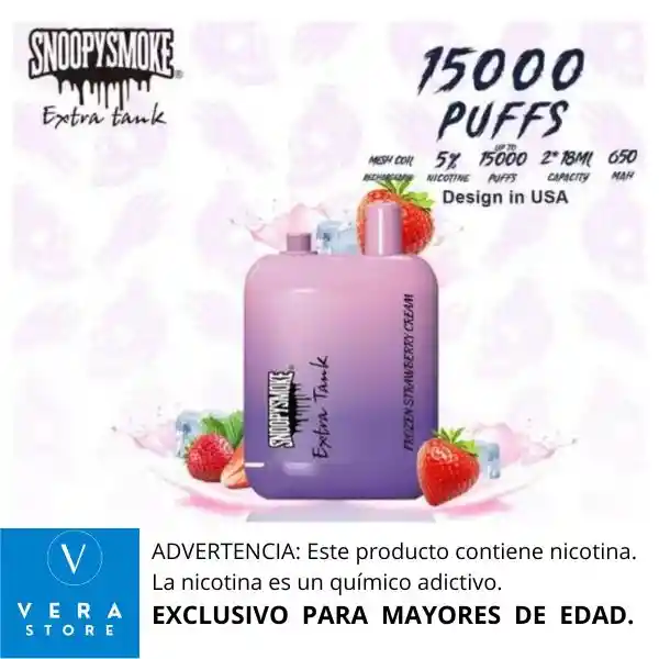 RECOMENDACIÓN IMPORTANTE: El vaporizador no llega con su batería cargada al 100% desde fabrica. Razón por la cual se debe colocar a cargar como mínimo 1 (una) hora de manera continua antes de usarlo, para lograr así un vapeo prolongado. El vaporizador SnoopySmoke de 15.000 puffs es un dispositivo desechable que ofrece una experiencia de vapeo prolongada y satisfactoria. A continuación, te presento algunas características y beneficios clave: - Capacidad y rendimiento: - Hasta 15.000 puffs por dispositivo, lo que garantiza una experiencia prolongada y sin interrupciones - Contiene una cantidad considerable de e-líquido con una variedad de sabores y niveles de nicotina - Diseño y batería: - Batería integrada de alta capacidad para soportar la larga duración del dispositivo - Diseño ergonómico y portátil para facilitar su uso en cualquier momento - Ventajas: - Larga duración y gran cantidad de puffs por dispositivo - No requiere recarga, lo que lo hace ideal para uso en movimiento - Amplia variedad de sabores y opciones para elegir - Colaboración: - La marca SnoopySmoke sugiere una posible colaboración con el famoso rapero Snoop Dogg, lo que podría aportar experiencia y calidad al producto - Consideraciones: - Es importante seguir las instrucciones de uso y mantenimiento para garantizar la seguridad y longevidad del dispositivo En general, el vaporizador SnoopySmoke de 15.000 puffs parece ser una excelente opción para aquellos que buscan una experiencia de vapeo prolongada y satisfactoria.
