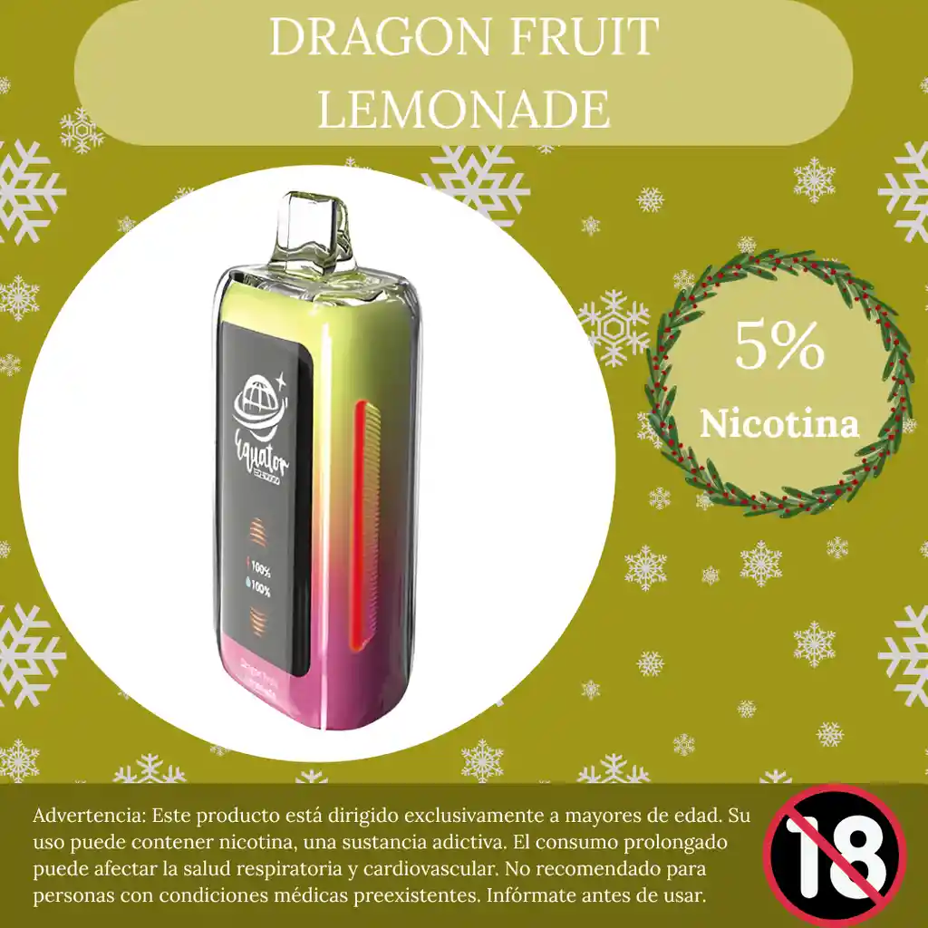 El Equator EQ30000 es un dispositivo desechable de alta capacidad diseñado para los entusiastas del vapeo. Cuenta con unas impresionantes 30,000 bocanadas y una concentración de sal de nicotina del 5% para una experiencia de vapeo satisfactoria. El dispositivo cuenta con una generosa capacidad de 30 ML de e-líquido, dividida uniformemente en tres tanques, cada uno con capacidad para 10 ML. Este diseño se complementa con un sistema de bobina de triple malla, lo que garantiza una producción óptima de sabor y vapor. El EQ30000 también incluye una pantalla animada para una fácil supervisión y un puerto tipo C para una carga cómoda. Exclusivo para mayores de edad.