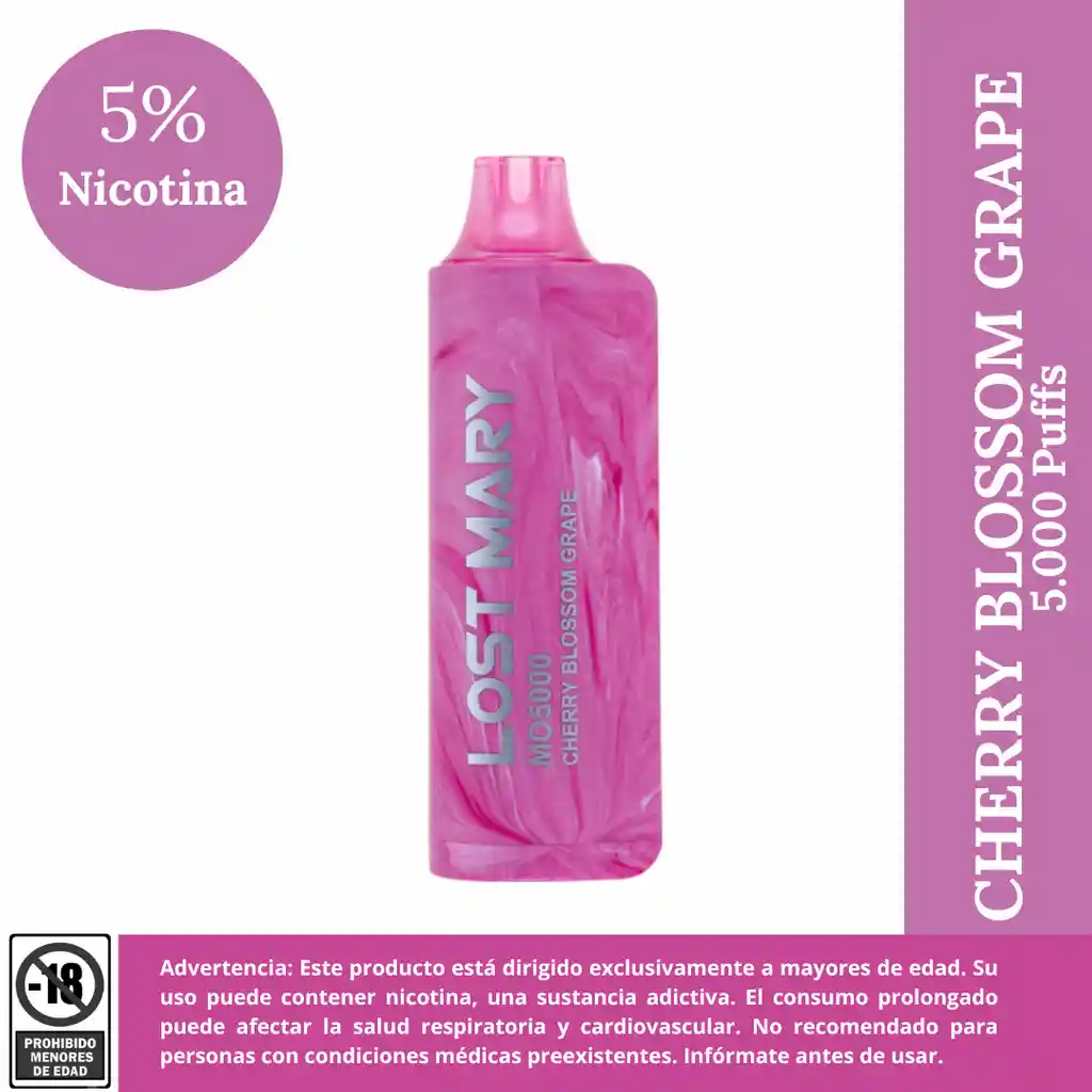 El Lost Mary MO5000 5000 puffs es compacto, portátil y ofrece hasta 5,000 puffs, brindando una experiencia de vapeo duradera. Pre-cargado con un 5 % de sal de nicotina libre de tabaco (50mg), este dispositivo es ideal para quienes buscan un sabor auténtico y potente. Su resistencia de malla de 1.2 ohms garantiza un rendimiento superior con cada calada, mientras que sus 16 sabores deliciosos ofrecen variedad y satisfacción. Características del Lost Mary MO5000: 5000 Puffs: Disfruta de hasta 5000 caladas con un solo dispositivo. 5% de nicotina (50mg): Ofrece una experiencia potente con sal de nicotina libre de tabaco. Resistencia de malla 1.2 ohms: Asegura un vapeo suave y consistente. Recargable: Conecta el dispositivo al puerto USB tipo C para recargarlo y seguir disfrutando de su rendimiento. Diseño ergonómico: Su estructura de silicona semi-redonda es suave al tacto, ofreciendo un agarre cómodo y seguro. El Lost Mary MO5000 5000 puffs es el dispositivo perfecto para quienes buscan una experiencia dulce, potente y duradera. Ideal para quienes desean la comodidad de un dispositivo portátil y recargable sin sacrificar el sabor o la calidad de las caladas. Solo para mayores de edad