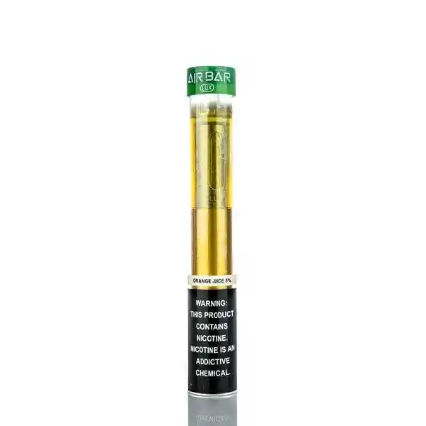 Sabor Orange Juice Air Bar Lux es un vapeador desechable, es de Sourin una de las marcas más populares en USA. Enciende una luz a cada fumada y viene precargado con 2.7 ml de líquido a base de sal con 5% de nicotina, te proporciona un estimado de 1,000 fumadas ya que cuenta con una batería desechable de 500 mAh de alta capacidad