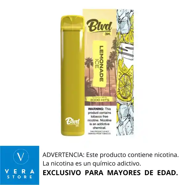 RECOMENDACIÓN IMPORTANTE: El vaporizador no llega con su batería cargada al 100% desde fabrica. Razón por la cual se debe colocar a cargar como mínimo 1 (una) hora de manera continua antes de usarlo, para lograr así un vapeo prolongado. El vaporizador BLVD 3K es un dispositivo desechable que ofrece hasta 3,000 puffs, con una batería de 1100mAh y 8ml de líquido. Contiene nicotina al 5% (50mg) y viene en varios sabores. - Características: - Batería recargable - 8ml de líquido - Hasta 3,000 puffs - Nicotina al 5% (50mg) Es importante tener en cuenta que los vapes pueden contener sustancias adictivas y no son recomendados para menores de edad ni para personas que no fuman.