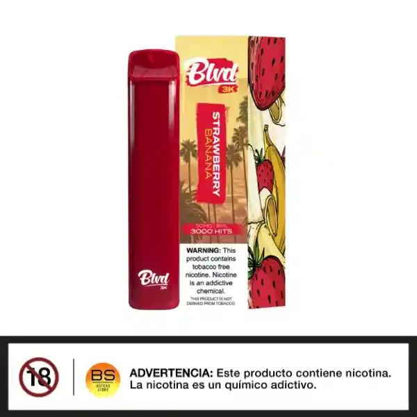 RECOMENDACIÓN IMPORTANTE: El vaporizador no llega con su batería cargada al 100% desde fabrica. Razón por la cual se debe colocar a cargar como mínimo 1 (una) hora de manera continua antes de usarlo, para lograr así un vapeo prolongado. El vaporizador BLVD 3K es un dispositivo desechable que ofrece hasta 3,000 puffs, con una batería de 1100mAh y 8ml de líquido. Contiene nicotina al 5% (50mg) y viene en varios sabores. - Características: - Batería recargable - 8ml de líquido - Hasta 3,000 puffs - Nicotina al 5% (50mg) Es importante tener en cuenta que los vapes pueden contener sustancias adictivas y no son recomendados para menores de edad ni para personas que no fuman.