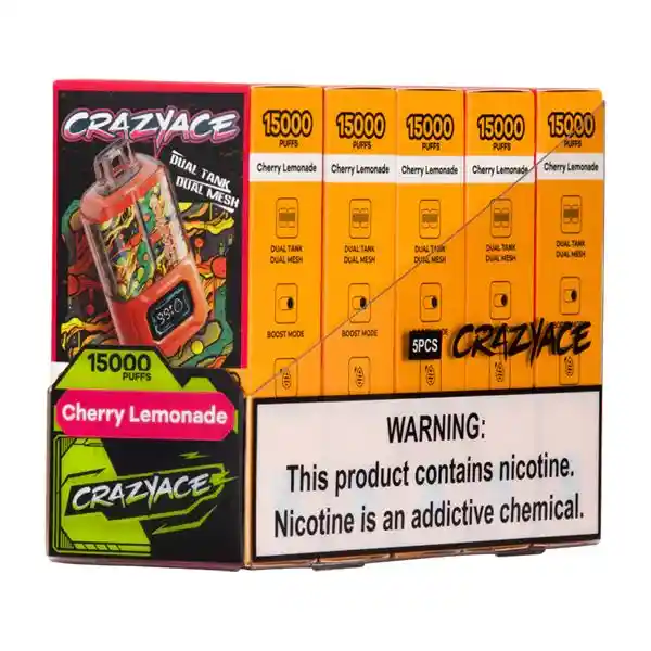 El CRAZYACE B15000 está equipado con tanques dobles de 8 ml + 8 ml para una mayor capacidad de e-líquido. Cada tanque tiene una bobina de malla, que eleva la eficiencia de atomización, brindando un sabor rico y consistente. La pantalla mejorada es súper grande y te indica el nivel de batería y de e-líquido en tiempo real. Equipado con una batería recargable de gran capacidad de 900 mAh, el dispositivo de hasta 15000 bocanadas puede brindarle un placer de vapeo continuo.
