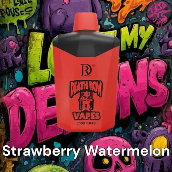 vapeador desechable Death Row de 7000 Puffs con sabor Strawberry Watermelon : Dimensiones: 78 mm de alto, 42 mm de ancho y 22 mm de grosor. Capacidad de e-líquido: 10.5 ml. Concentración de nicotina: 5% (50 mg/ml). Batería: Recargable de 600 mAh con puerto de carga USB tipo C. Resistencia: 1.0 ohm. VC Potencia de la bobina: 11 W. Número de caladas: Aproximadamente 5000. Este dispositivo ofrece una experiencia de vapeo prolongada y satisfactoria, combinando un diseño compacto con características avanzadas para los entusiastas del vapeo.