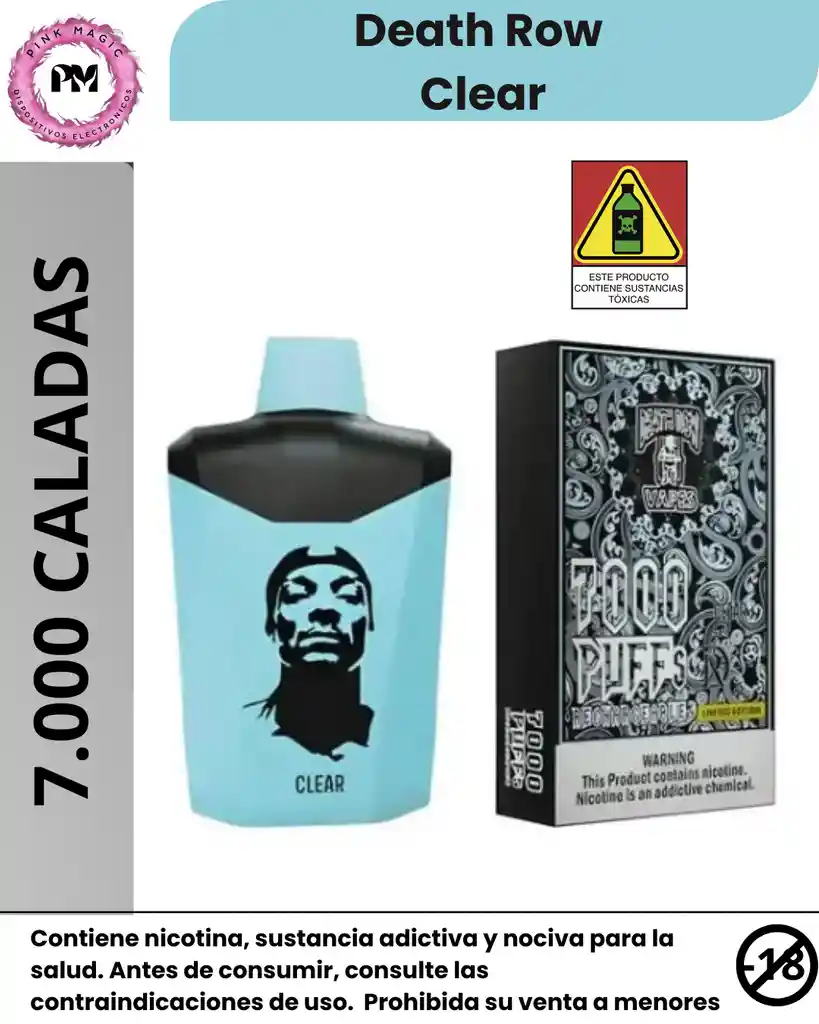 Vape Death Row 7.000 Puffs Clear El Death Row 7000 Puffs es un dispositivo desechable recargable con aproximadamente 7 000 puffs estimados, 12 ml de e-líquido precargado y 5 % (50 mg) de nicotina en forma de sales. Está diseñado con tecnología de bobina de malla para una producción de vapor consistente, batería integrada con carga USB-C y una estructura compacta de fácil uso.