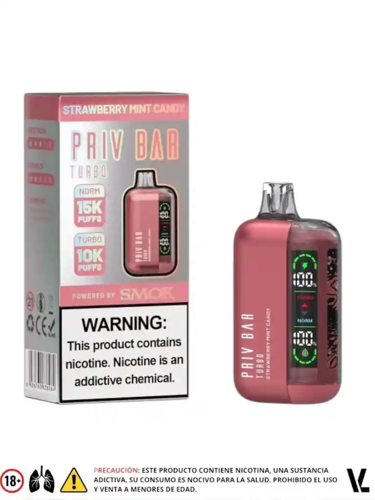 Vape Desechable Priv Bar Turbo 15.000 Puffs Strawberry Mint Candy 5% Nic.