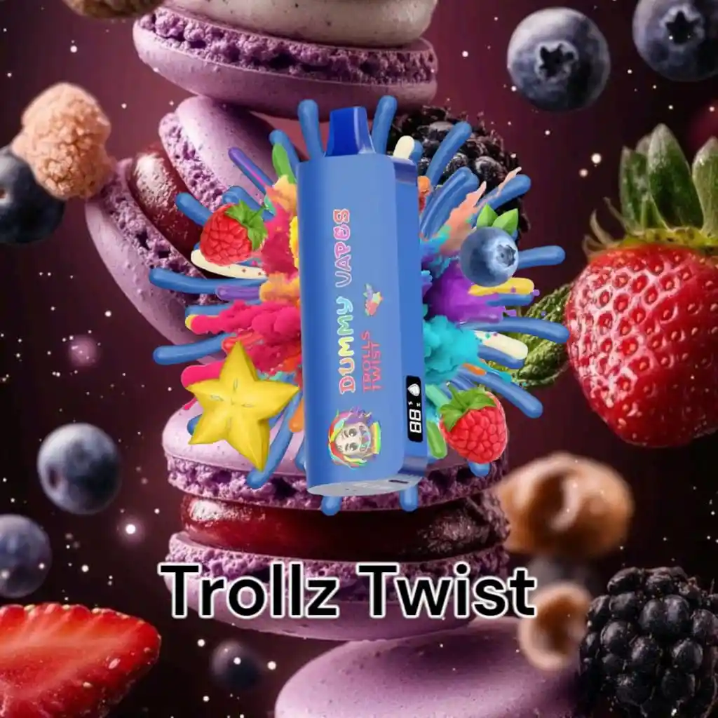 El vapeador desechable DUMMY de 8000 puffs en sabor Trollz Twist ofrece una experiencia de vapeo prolongada y satisfactoria. A continuación, se detallan sus especificaciones técnicas: Dimensiones: 120 mm de largo, 31 mm de ancho y 39 mm de grosor. Capacidad de e-líquido: 18 ml prellenados, garantizando sesiones prolongadas sin necesidad de recarga. Batería: 650 mAh recargable, diseñada para durar hasta el último puff. Concentración de nicotina: 5% (50 mg), ideal para una experiencia de vapeo intensa y satisfactoria. Número de inhalaciones: Hasta 8000, perfecto para usuarios que buscan un dispositivo duradero y de alto rendimiento. Tecnología de calentamiento: Utiliza una bobina de malla QUAQ, que proporciona nubes notablemente suaves y sabrosas.