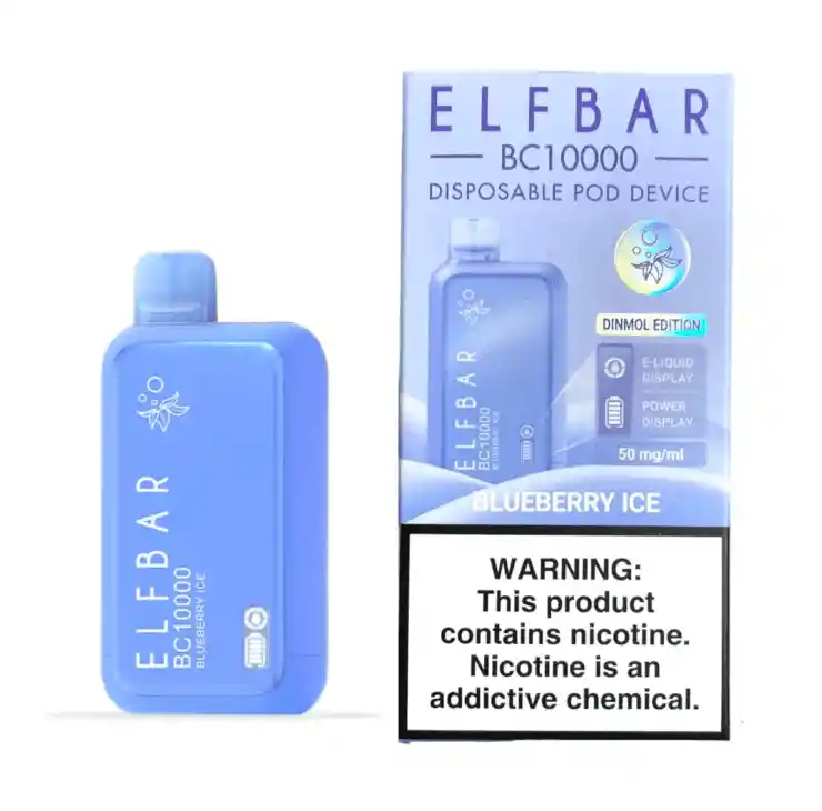 Vaporizador Elfbar Mora Azul Mentolado 10.000 puffs recargable. 5% nicotina. Cuenta con medidor de esencia y de bateria.