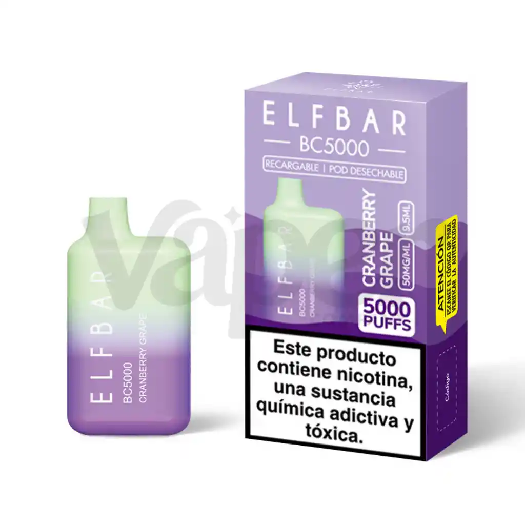 Elfbar 5000 puffs recargable arandano y uva. 5%