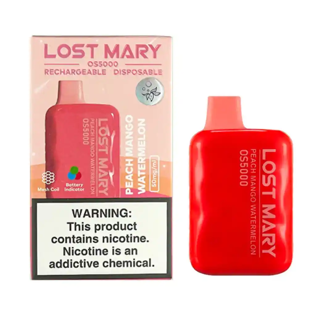 DURAZNO MANGO SANDIA. Vape Vaporizador Vapeador Elfbar Lost Mary 5000 puffs. 5%