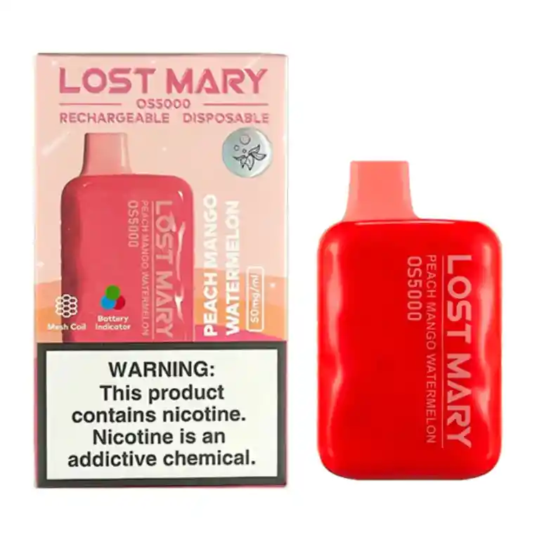 DURAZNO MANGO SANDIA. Vape Vaporizador Vapeador Elfbar Lost Mary 5000 puffs. 5%