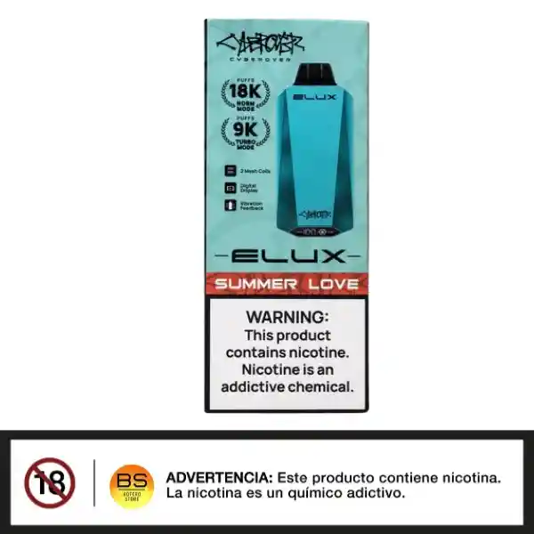 RECOMENDACIÓN IMPORTANTE: El vaporizador no llega con su batería cargada al 100% desde fabrica. Razón por la cual se debe colocar a cargar como mínimo 1 (una) hora de manera continua antes de usarlo, para lograr así un vapeo prolongado. El vaporizador Elux Cyberover es un vape desechable recargable que ofrece una experiencia de vapeo satisfactoria y llena de sabor. Características: - Diseño y tecnología: Cuenta con un diseño ergonómico y elegante, con una pantalla LED que muestra el nivel de batería y e-líquido. Utiliza tecnología de resistencia Mesh Coil para una mejor producción de vapor y sabor. - Batería y capacidad: Tiene una batería recargable de 650mAh y una capacidad de 18ml de e-líquido. - Caladas: Ofrece hasta 18,000 caladas, lo que lo hace ideal para aquellos que buscan un vape de larga duración. - Sabores: Disponible en una variedad de sabores. - Niveles de nicotina: Ofrece opciones de nicotina de 0%, 1.2% y 2% (12mg, 20mg, 50mg). - Disponibilidad: Se puede encontrar en tiendas en línea y físicas que venden productos de vapeo. En general, el Elux Cyberover es una excelente opción para aquellos que buscan un vape de alta calidad, fácil de usar y con una larga duración