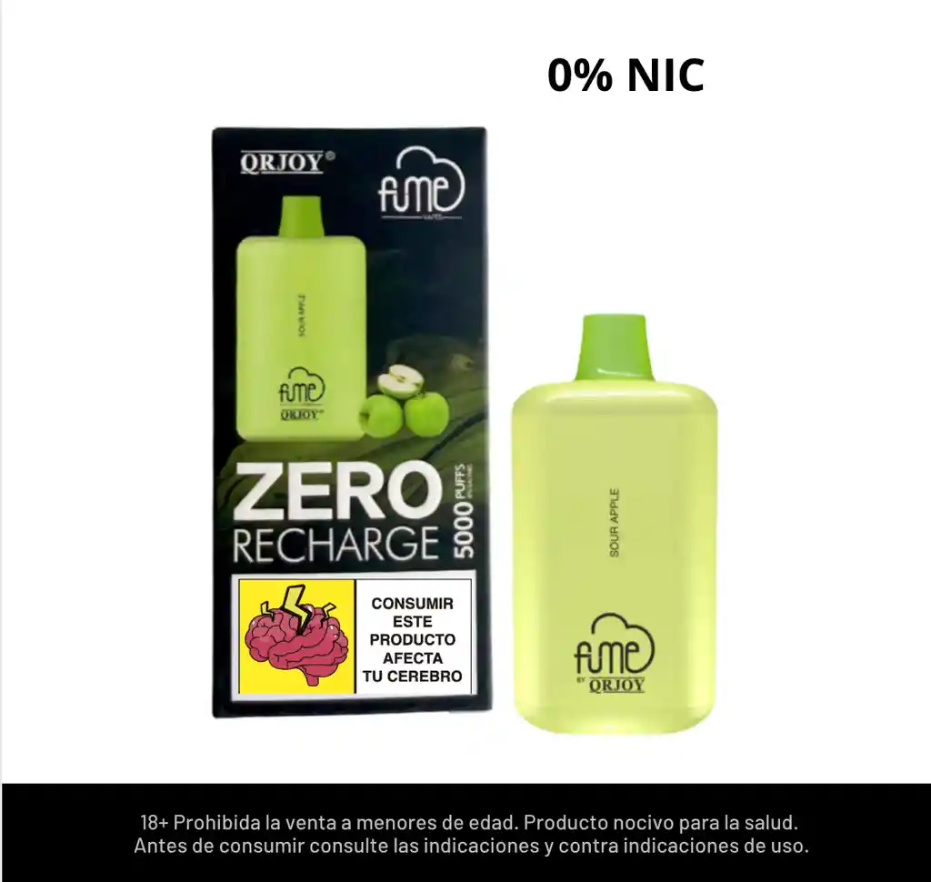 Vape Fume Recharge Manzana verde sin nicotina 5000 puffs recargable Prohibida la venta a menores de edad.
