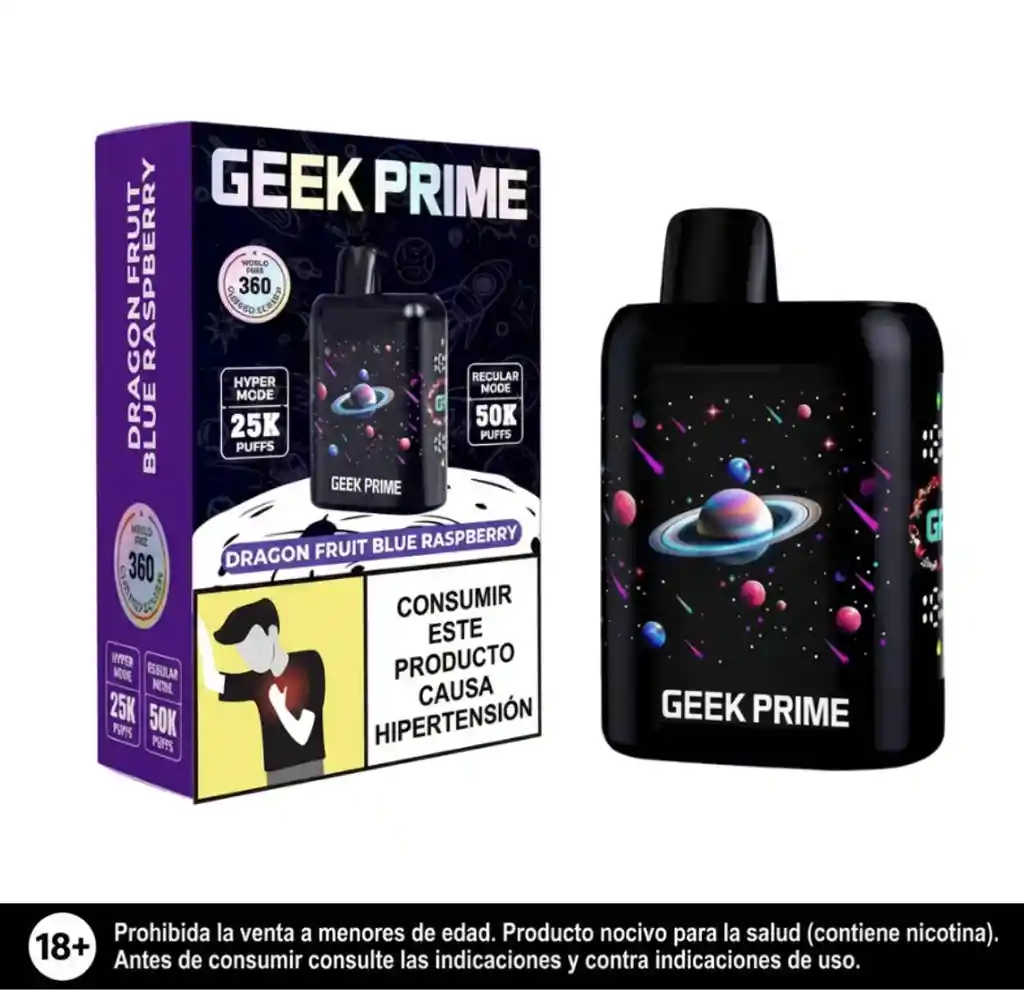 FRAMBUESA AZUL Y PITAYA. Geek Bar modo turbo 25.000 puffs, modo normal 50.000 puffs, con indicador de esencia y de bateria, puerto de carga tipo C.