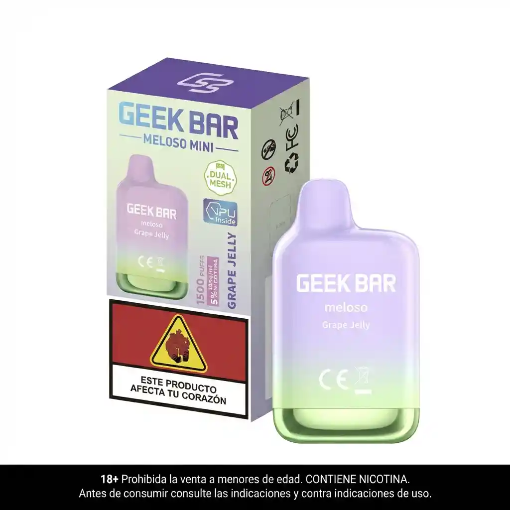 GOMITA DE UVA. Contiene 1 unidad, recargado hasta con 1.500 puffs. Nicotina 5% Producto exclusivo para mayores de edad, contiene nicotina, la nicotina es adictiva