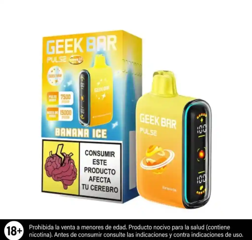BANANO MENTOLADO. Vaporizador desechable. Contiene 1 unidad con bateria recargable, recargado hasta con 15.000 puffs en modo regular y 7.500 puffs en modo Pulse. Nicotina 5% Producto exclusivo para mayores de edad, contiene nicotina, la nicotina es adictiva.