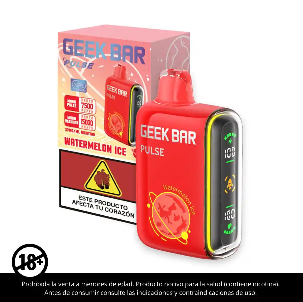 Vaporizador desechable. Contiene 1 unidad con bateria recargable, recargado hasta con 15.000 puffs en modo regular y 7.500 puffs en modo Pulse. Nicotina 5% Producto exclusivo para mayores de edad, contiene nicotina, la nicotina es adictiva. SABOR: Sandia mentolado.