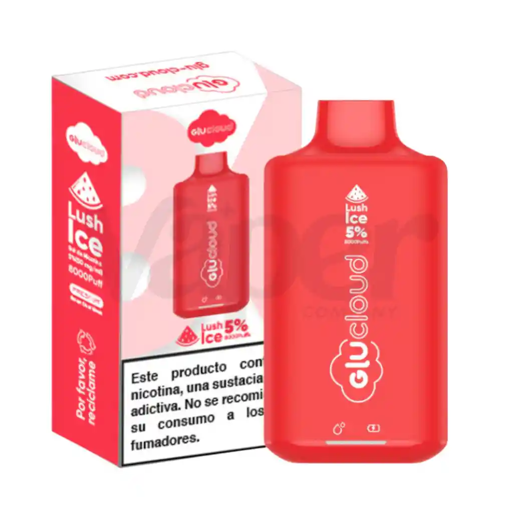 Vape GluCloud Sandia mentolado 8000 puffs recargable, excelente sabor y calidad, viene con medidor de bateria y de esencia. 5%