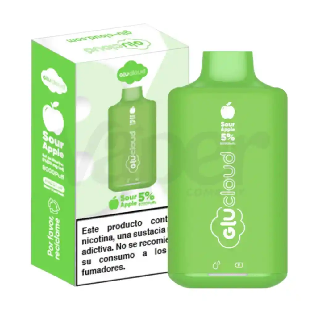 Vape GluCloud Sabor manzana verde acida 8000 puffs recargable, excelente sabor y calidad, cuenta con medidor de esencia y de bateria. 5%