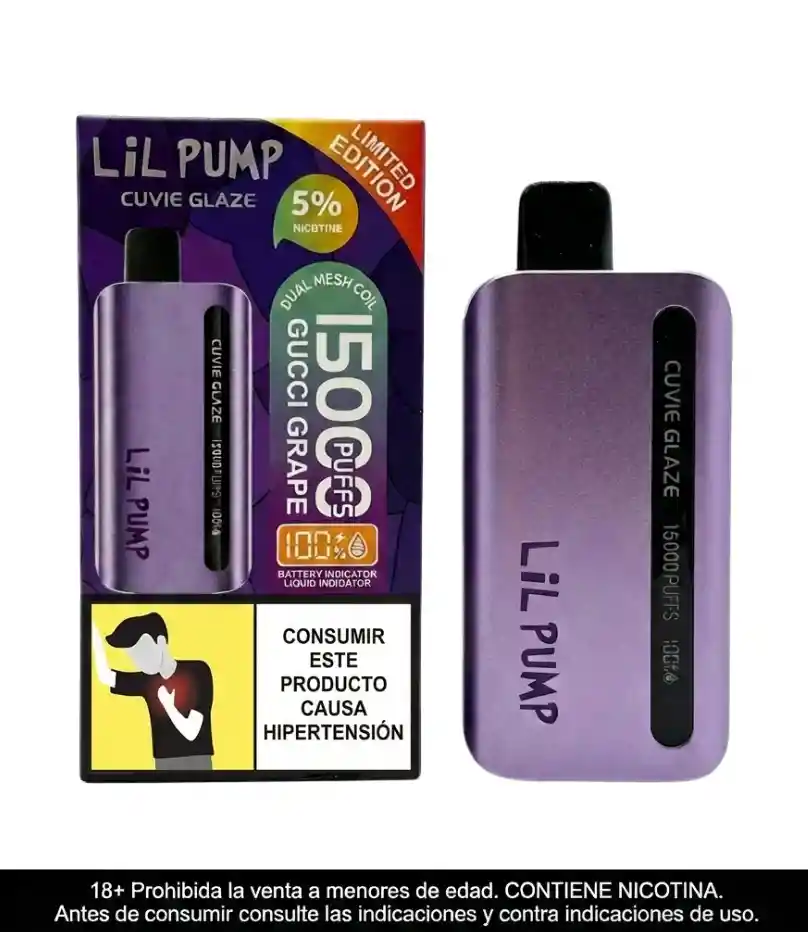 Vape Lil Pump Sabor Uva 15.000 Puffs, incluye cable cargador tipo C.