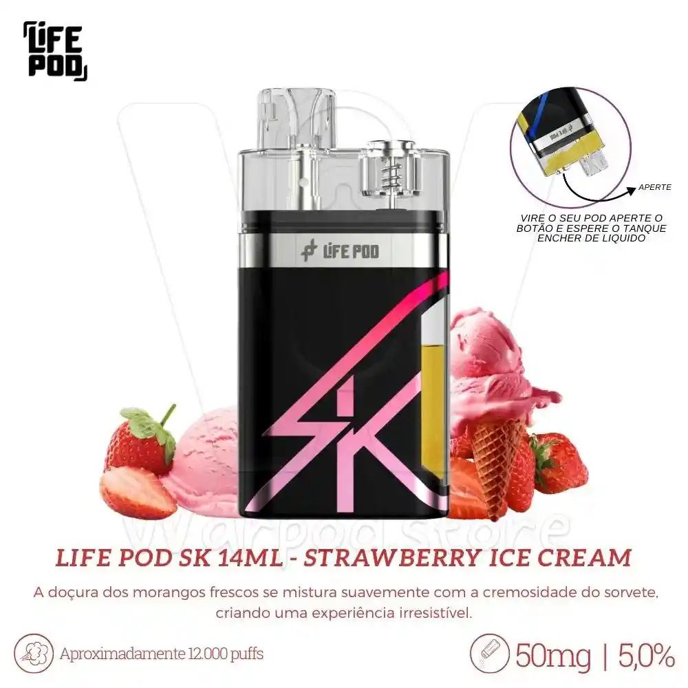 Vape Life Pod Sk - Strawberry Frost - 14000 Puff - 5% Nicotina