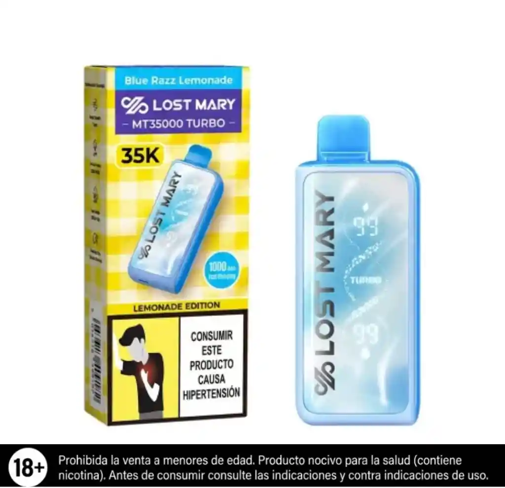 LIMONADA DE MORA AZUL. Modo Turbo o Modo normal, 35.000 Puffs, con indicador de esencia y de bateria, puerto de carga tipo C.